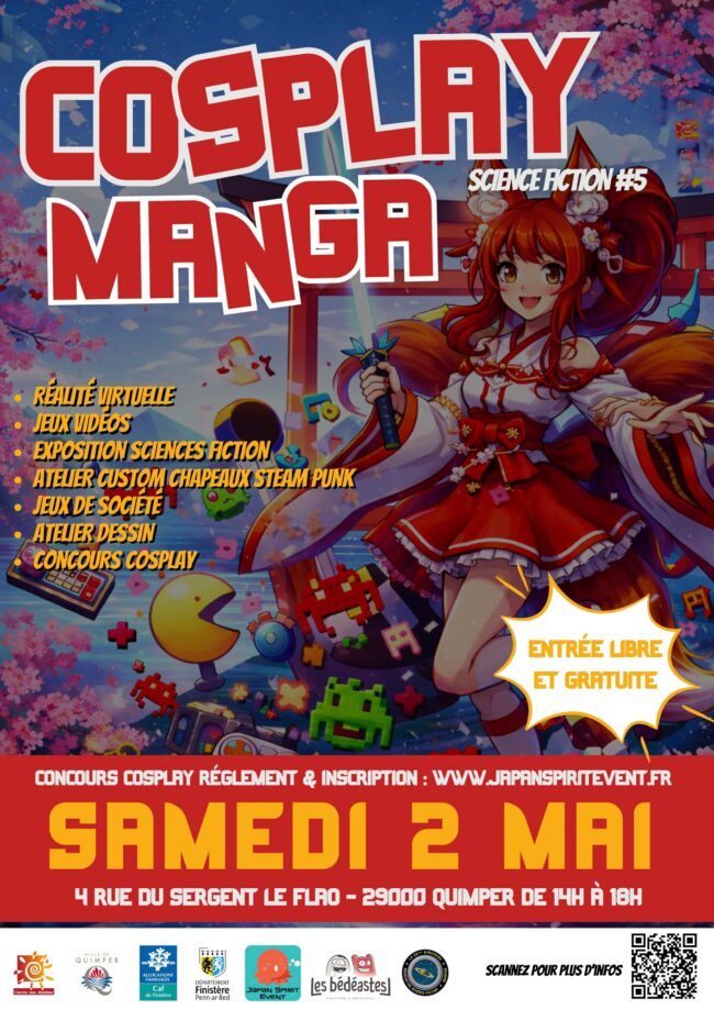 Événement Cosplay, Manga & Science-Fiction à Quimper : prépare-toi pour un voyage hors du temps ! Tu fais quoi le samedi 2 mai 2026 ? Spoiler : tu vas vouloir être à Quimper, au Centre des Abeilles, parce qu’un événement complètement immersif débarque… et ça promet ! De 14h à 18h Centre des Abeilles –…