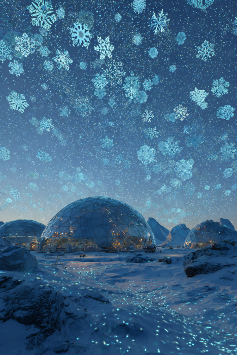 Certains auteurs imaginent un futur où le réchauffement climatique entraîne un dérèglement si violent que les hivers deviennent polaires, dignes d’une ère glaciaire. Les fêtes s’organisent alors dans des abris high-tech, isolés du froid par des dômes de chaleur artificielle.