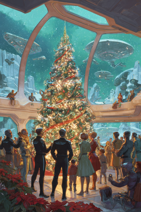 Dans des mondes futuristes où les humains voyagent entre les étoiles, les célébrations hivernales rappellent l’importance de la chaleur, de la communauté, du foyer – qu’importe l’endroit où l’on se trouve.